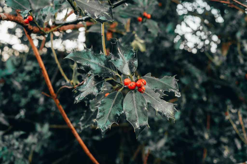 Holly, Nature giving freedom to live through winter, beautiful greenery and bright red berries. Believing in spirit and connecting with inner strength, moving through difficult times.